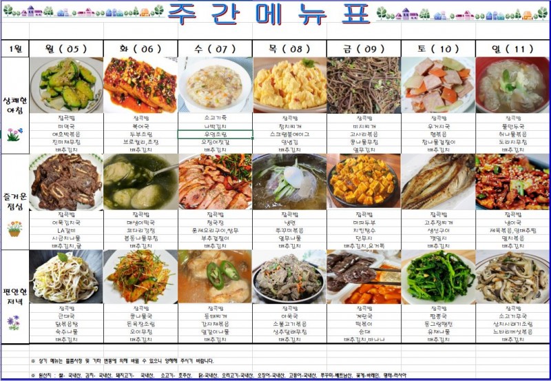 2025년1월5일~2025년1월11일 주간식단표