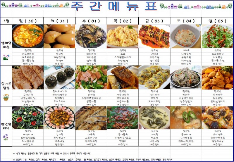 2026년 3월30일~2026년 4월5일 주간식단표