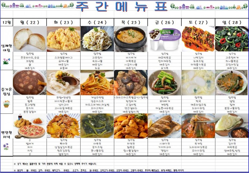 2025년12월22일~2025년12월28일 주간식단표