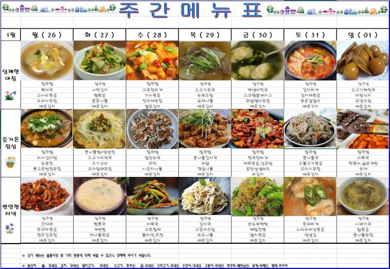 2026년1월26일~2026년2월1일 주간식단표