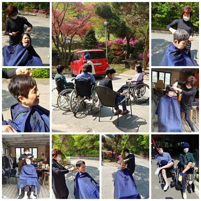 봉사자가 있어서 깔끔하게 머리를 자르고 표정도 밝아졌어요. 바쁜 와중에도 도움요청에