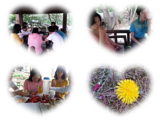 늘 방안에서만 있는것 보다는 파아란 잎들과 형형색들의 꽃들과 바람과 나비들, 아지랑이들을 벗삼아 오늘은 아담한 정자에서 샤론방 회의를 진행했어요. 요즘 이슈되고 있는 인권문제와 우리방의 문제점 , 좋은점 등을 토론하는 시간을 가졌습니다. 이슬씨와 선영님은 여전히 먹는것 앞에서는 감당이 어렵네요. ...